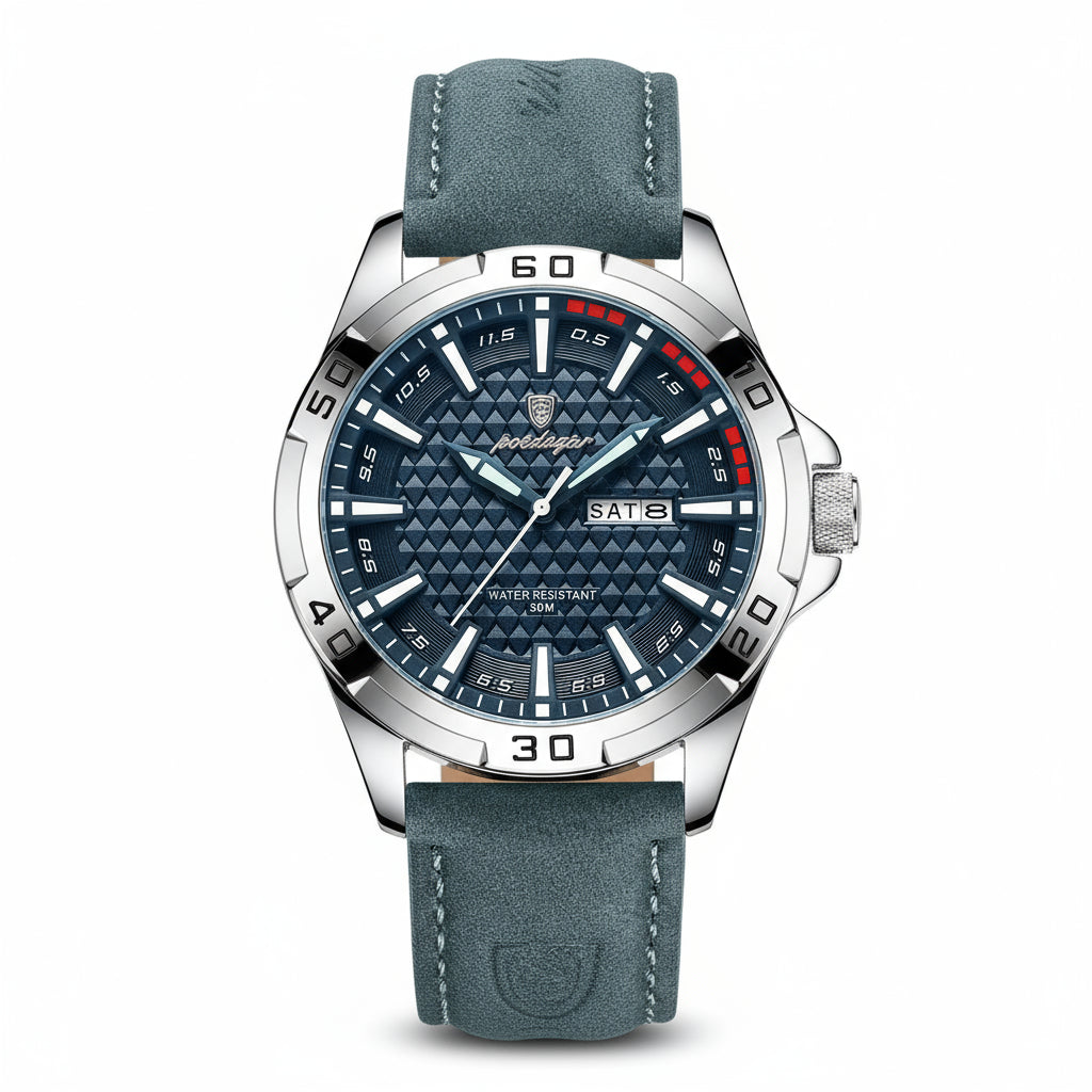 פונקציות: תאריך אוטומטי, תצוגת יום, מחוגים זוהרים בחושך.