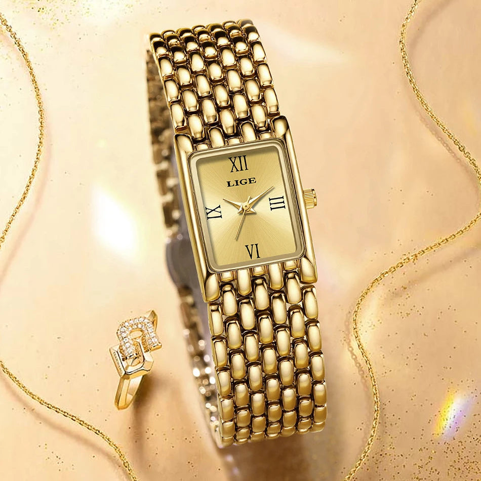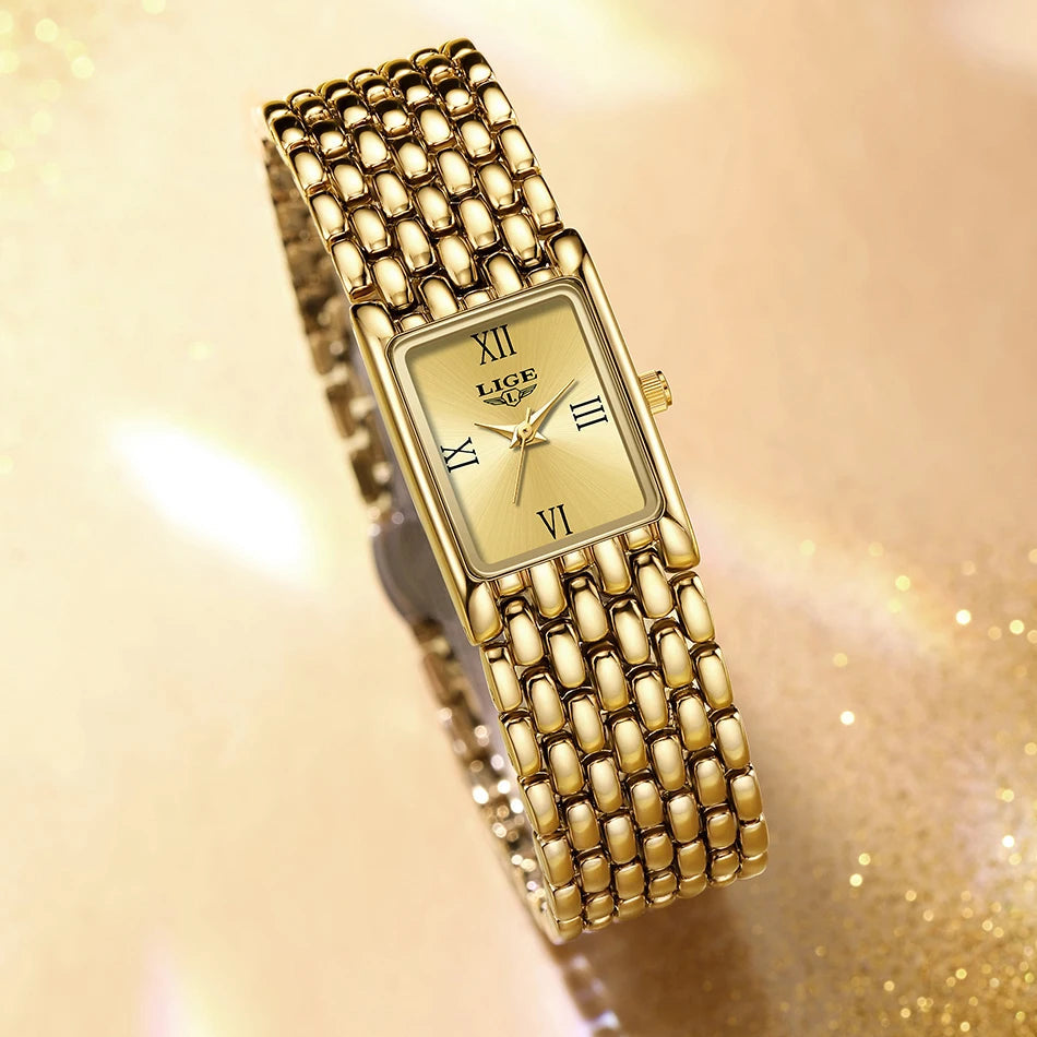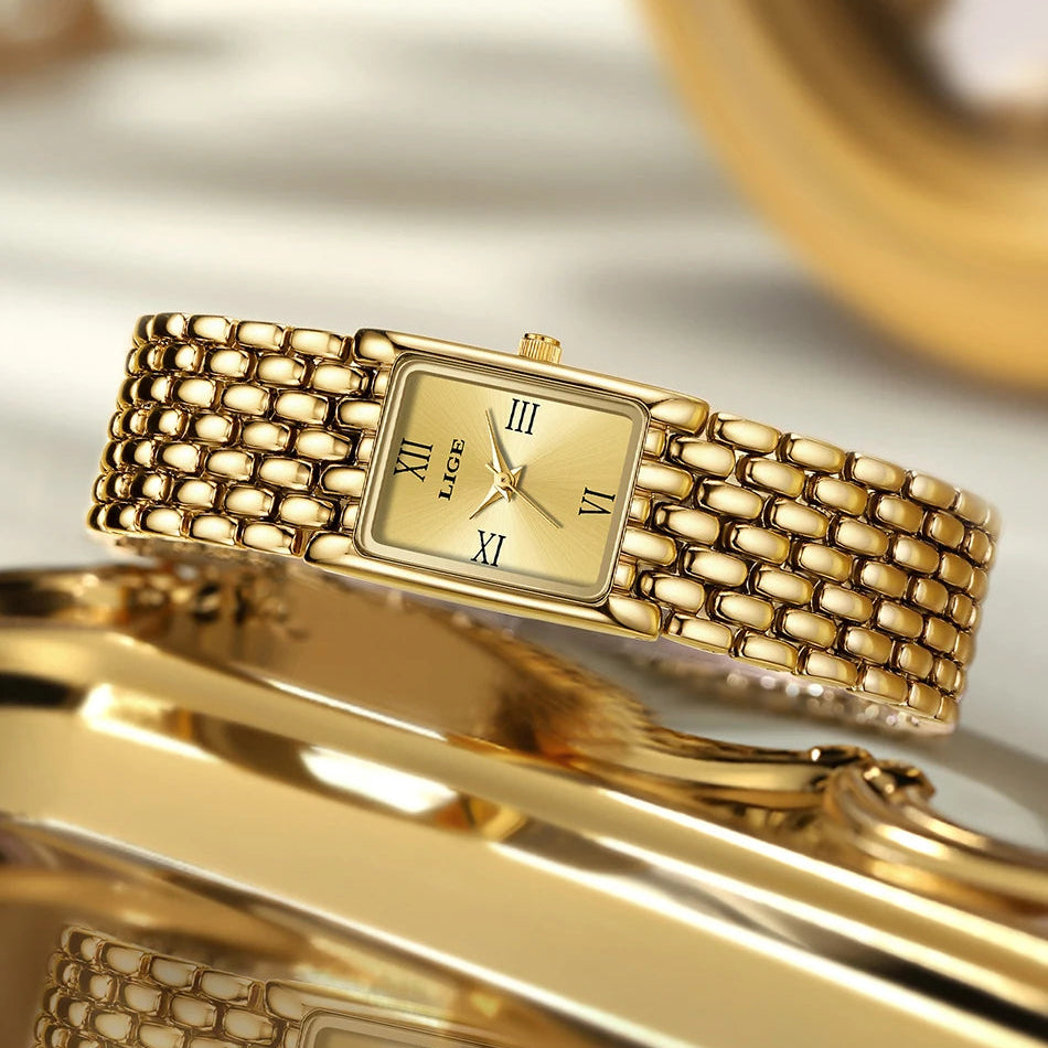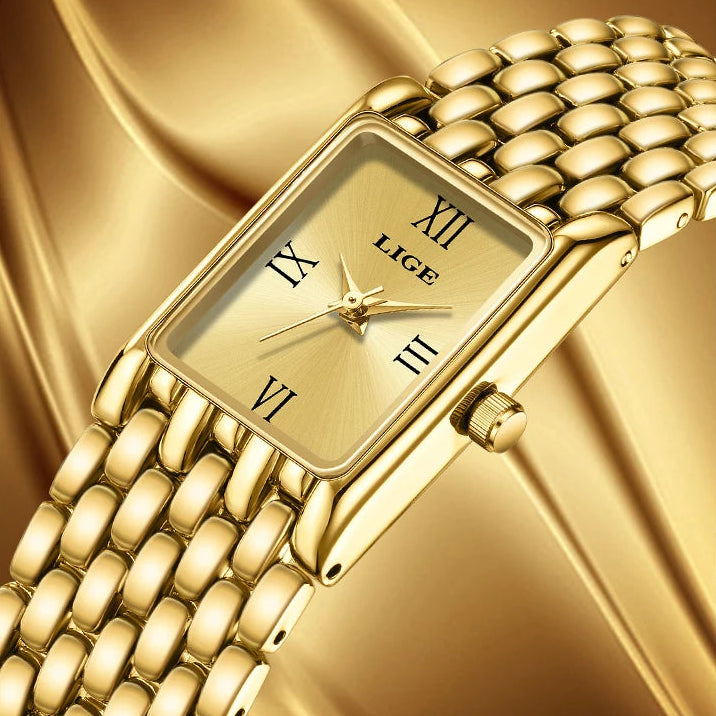 שעון יוקרתי בעל עיצוב מרובע אלגנטי יוצא דופן ונוכחות מרשימה על פרק היד.