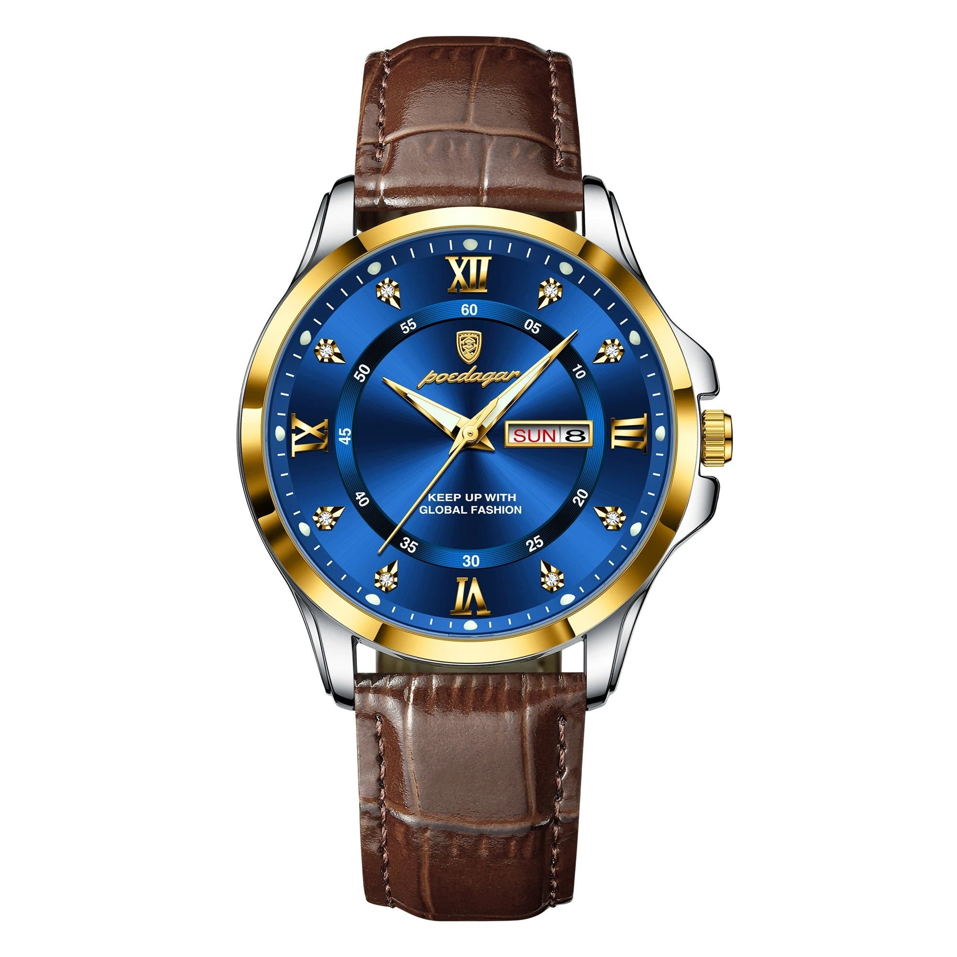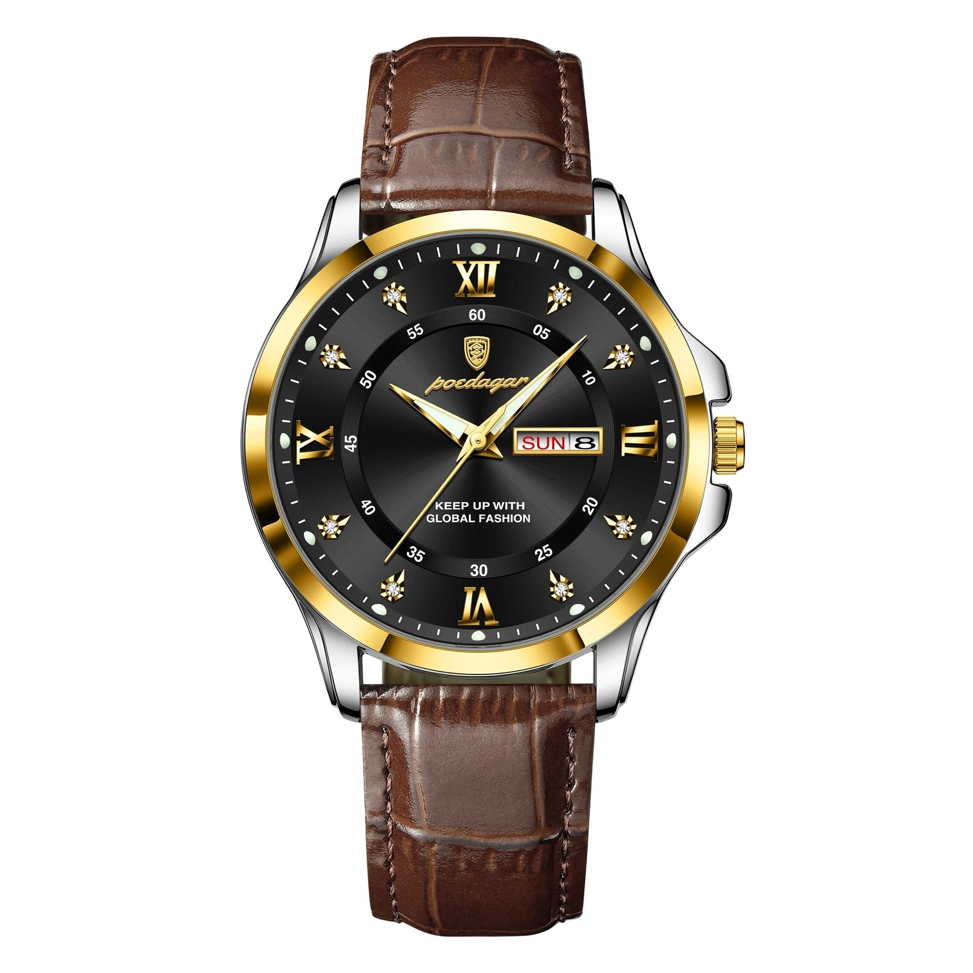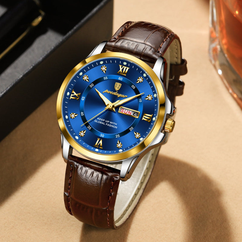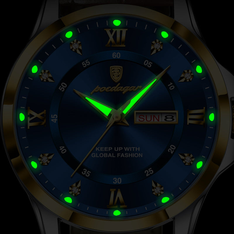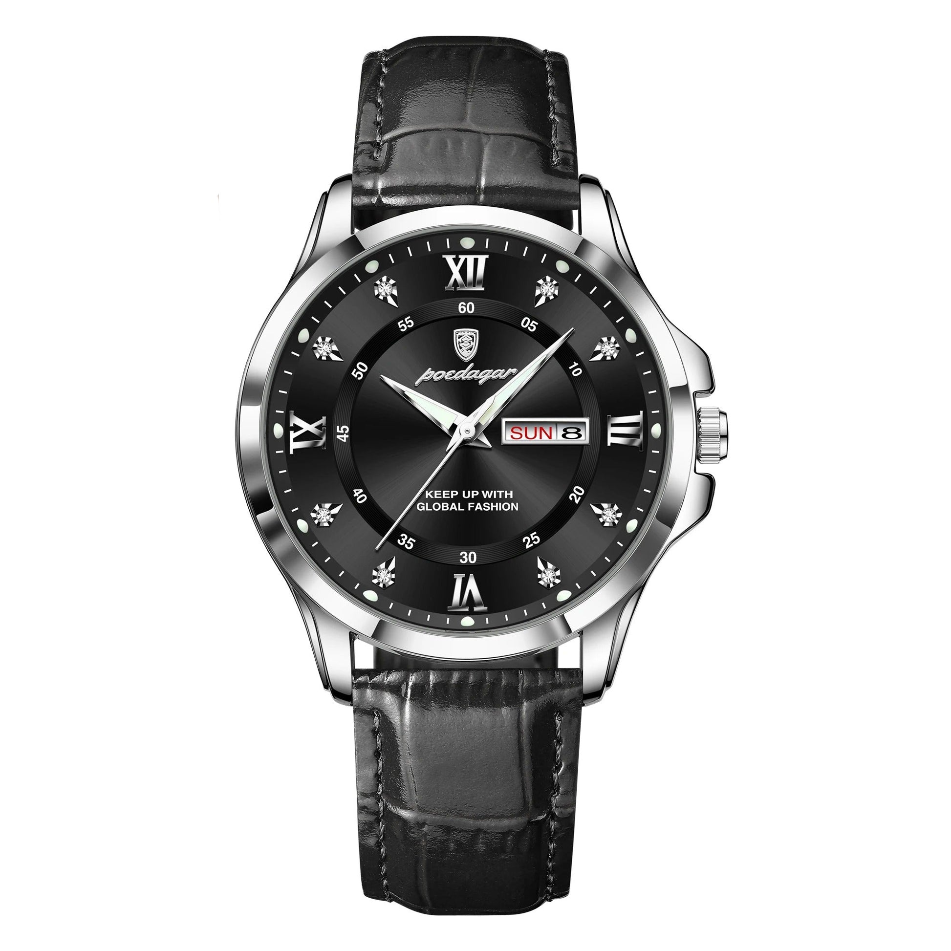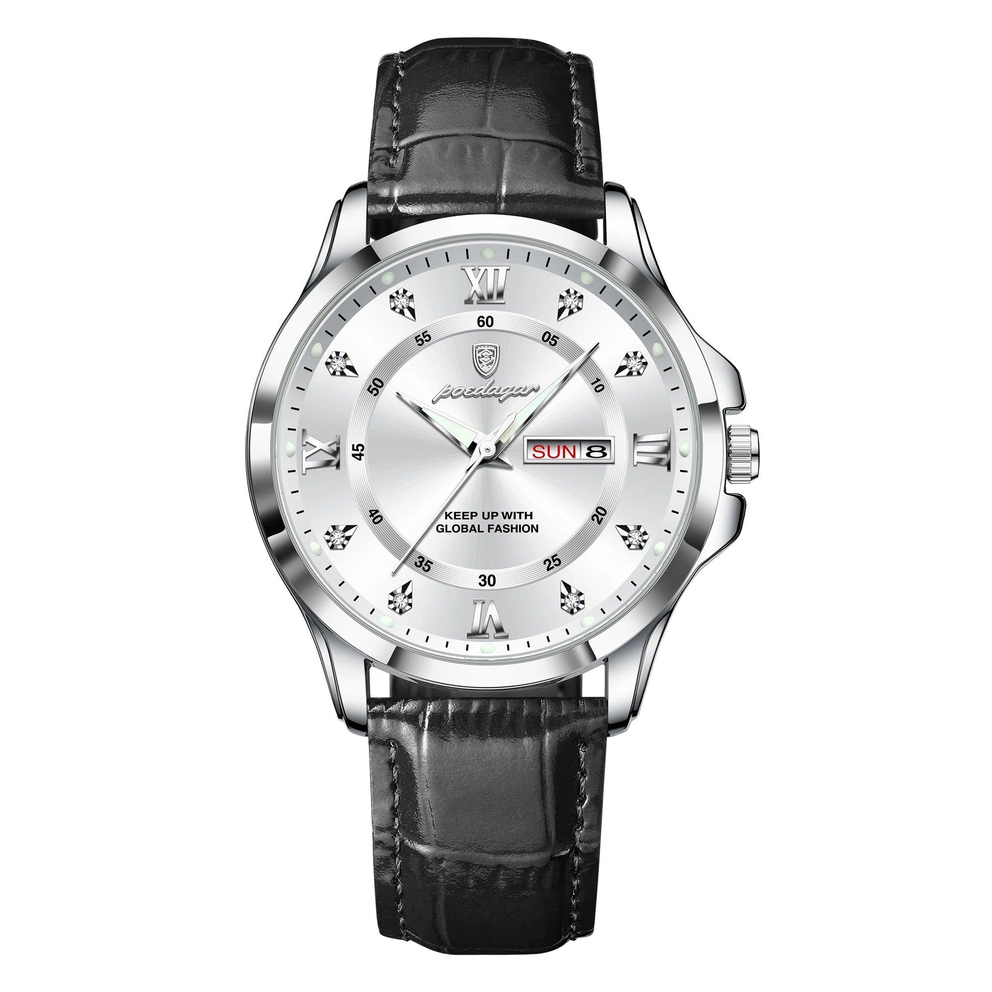 פונקציות: תאריך אוטומטי, תצוגת יום, מחוגים זוהרים בחושך ועמידות בזעזועים.